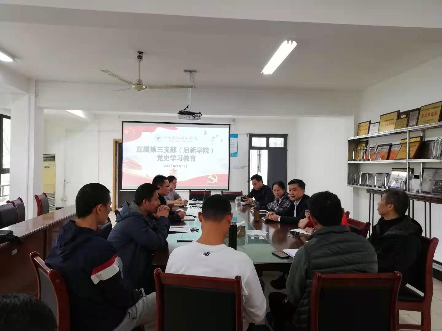 4月1日中午,直属第三党支部在游泳馆201召开学习教育专题会议,启新学院全体教师党员参加了会议。会议由直属第三党支部书记董小燕主持。