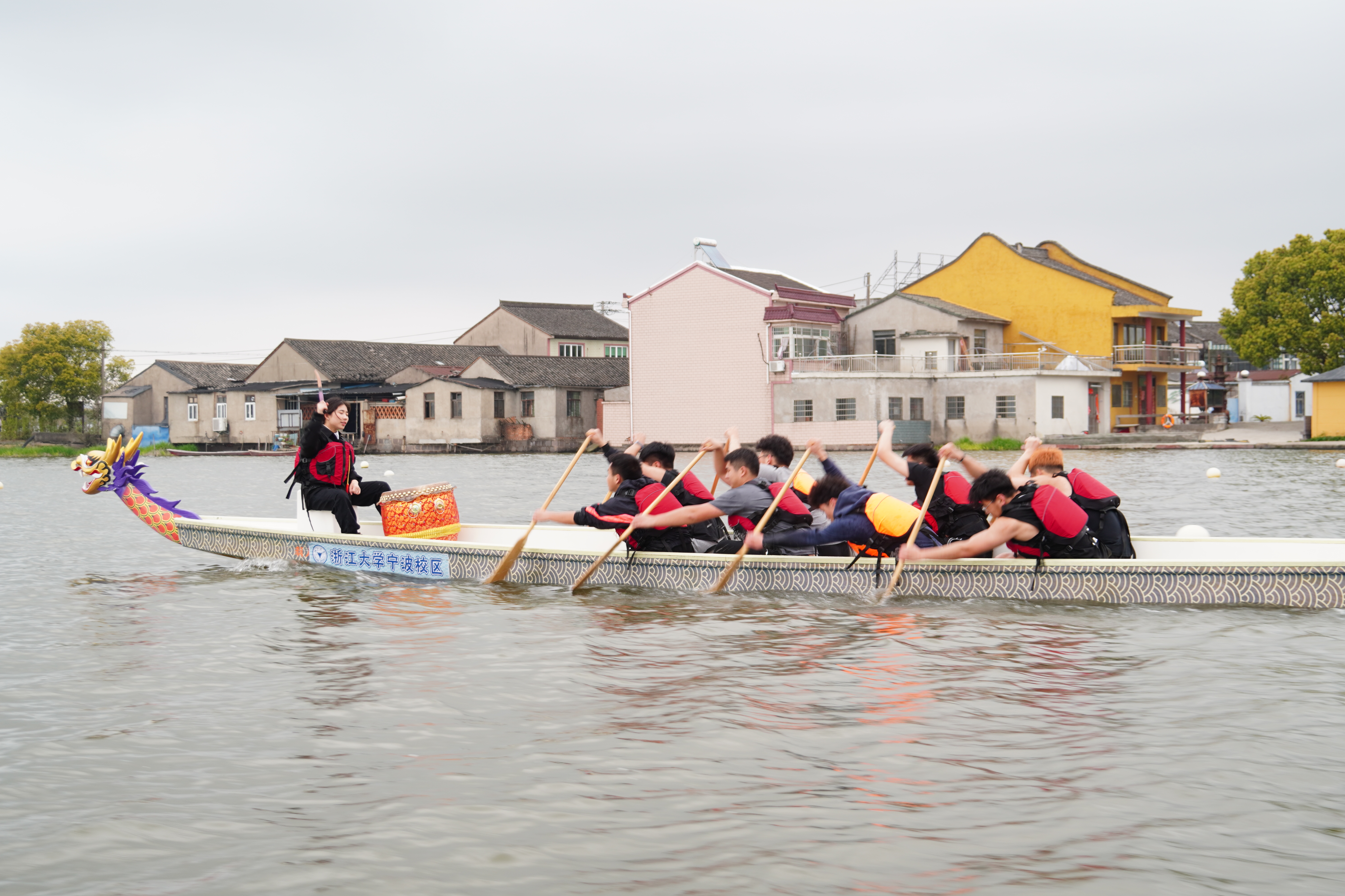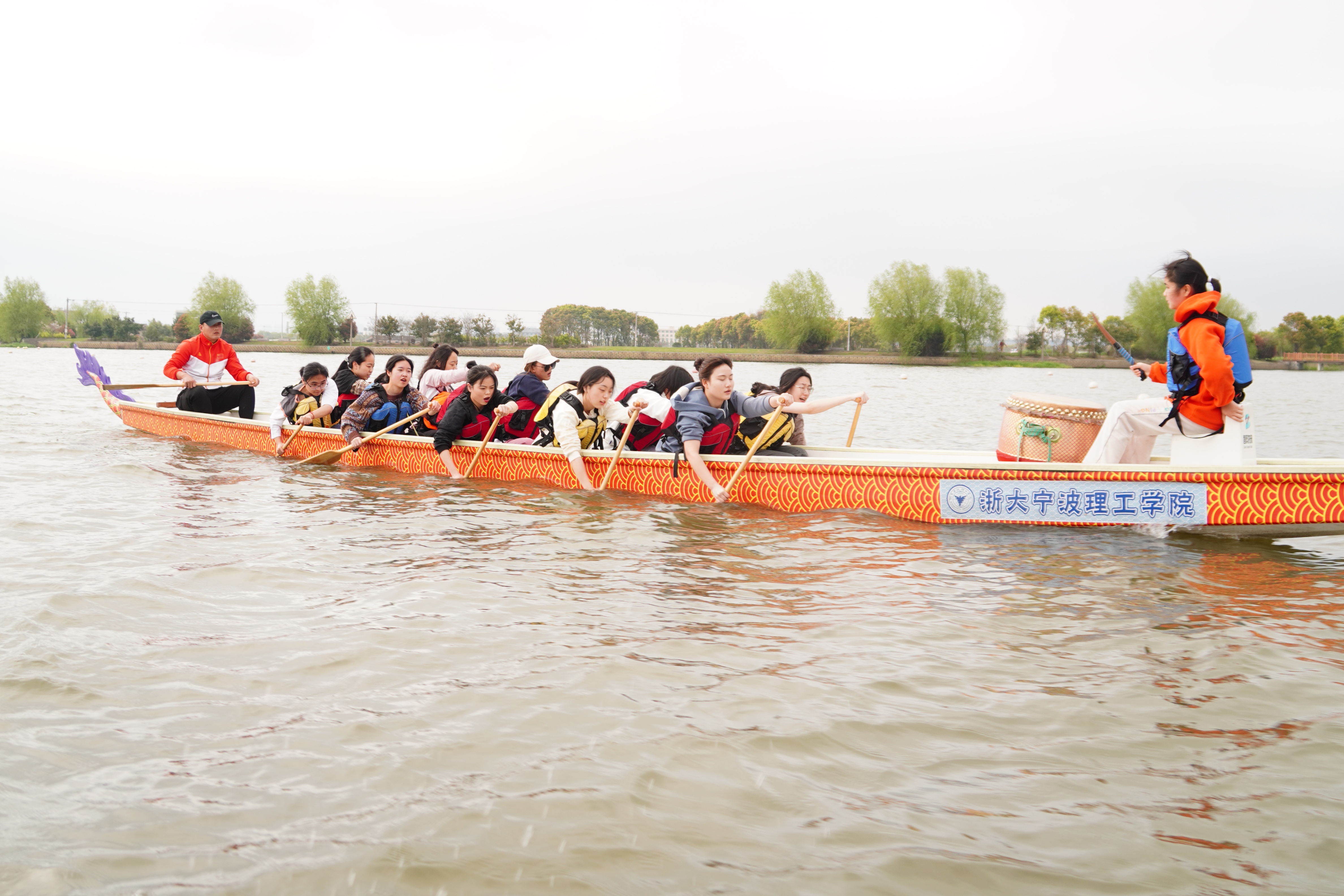 为弘扬中华优秀传统文化,进一步培养大学生团队协作、奋勇拼搏、积极向上、同舟共济的精神,学校联合浙江大学宁波校区分别组建了男女两支大学生龙舟队,明确专人负责、制定竞赛训练方案,坚持课余时间训练,直面曝晒、风霜,用有节奏的鼓声带动全船划手统一划桨,一次次的来回冲刺是为了激发身体潜力,更是为了提升团队协作能力。