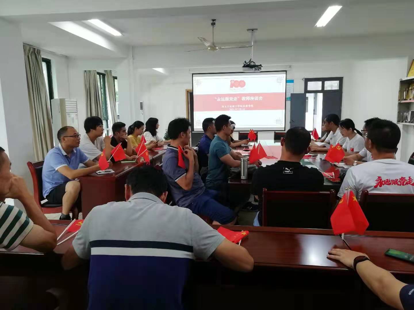 为深入学习习近平总书记在庆祝中国共产党成立100周年大会上的重要讲话精神,7月1日,启新学院在游泳馆201会议室召开“永远跟党走”教师座谈会,会议由启新学院副院长廖海鹏主持。