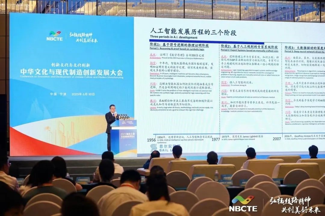李世鹏则从他的研究领域谈起,讲述当前最火的人工智能--大规模生成式预训练变换器模型(GPTs)和ChatGPT与中国传统文化的内在联系,人工智能将促进中华文化与现代制造的创新发展,通过数字文化赋能,实现制造业的转型升级和高质量发展。