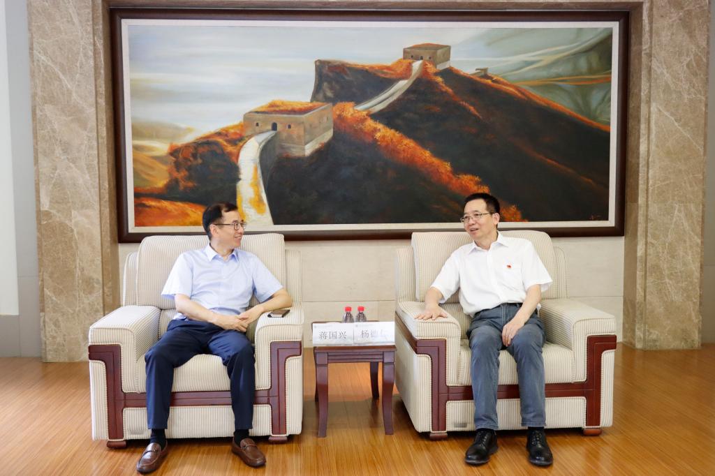 6月30日下午,故宫王跃工副院长、省文投蒋国兴总经理一行来校调研,考察学校数字文化学科建设情况。学校校长杨德仁院士会见了故宫王跃工副院长、省文投蒋国兴总经理一行,学校副校长鲁东明、办公室主任陈斌陪同调研。