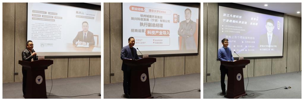 在“产教融合,五链协同”——企业家主题发言与分享活动中,浙江杰博人力资源有限公司董事长陈龙云、杭州城建开发集团有限公司浙北区域公司新兴科创发展(宁波)公司执行副总经理陈坚、宁波踏船头供应链管理有限公司总经理黄春琪三位致公党企业家代表讲述了自己的创业经历与感悟,为同学们分享最新行业资讯,帮助同学们更好地了解创业的机会与挑战,提出应当拥有洞察、学习、坚韧、格局、靠谱、感恩等能力和品质的意见建议,希望同学们保持奋进向未来的自信,心中有梦想眼里有光,一起启新创未来。