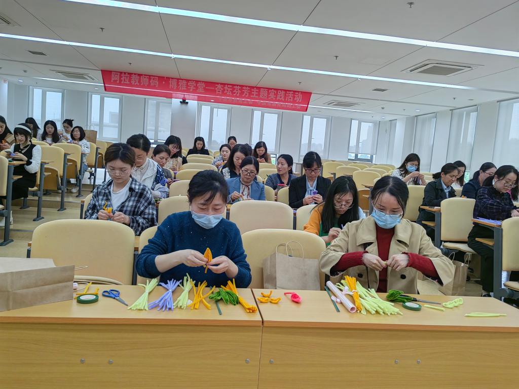 为积极倡导“教育情怀与生活情致同行”的理念,帮助广大女教职工在工作之余创设放松的学习与交流空间,学校工会联合妇联于4月26日下午共同举办了“博雅学堂”女教职工创意手作实践体验活动,吸引了全校70余位女教职工的积极参与和热情创作。