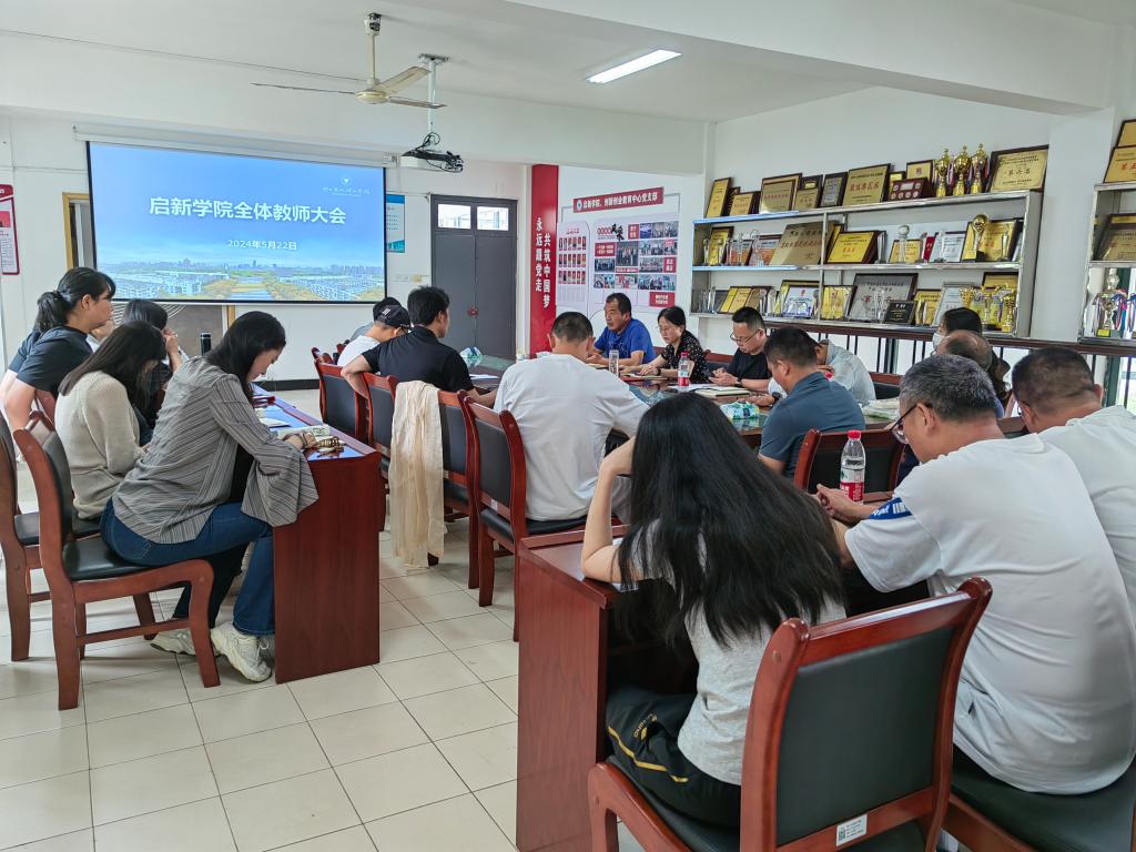 5月22日中午,启新学院在游泳馆201-1会议室召开全体教师大会,学院院长、党支部书记戴革萍作《纪律教育专题学习》报告,学院班子成员通报并部署近期重要工作。