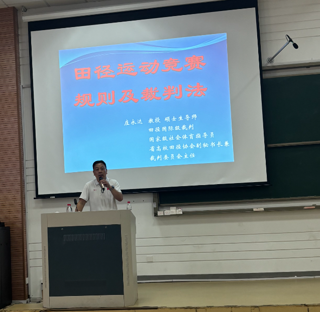 2024年10月16日中午,为保障学校2024田径运动会顺利进行、确保其圆满成功,启新学院组织全体裁判员开展赛前集中学习与研讨活动。本次活动邀请到宁波卫生职业技术学院公共体育部主任、国际级田径裁判员庄永达教授进行专题授课,共计80 余名教师及学生裁判参与此次培训。