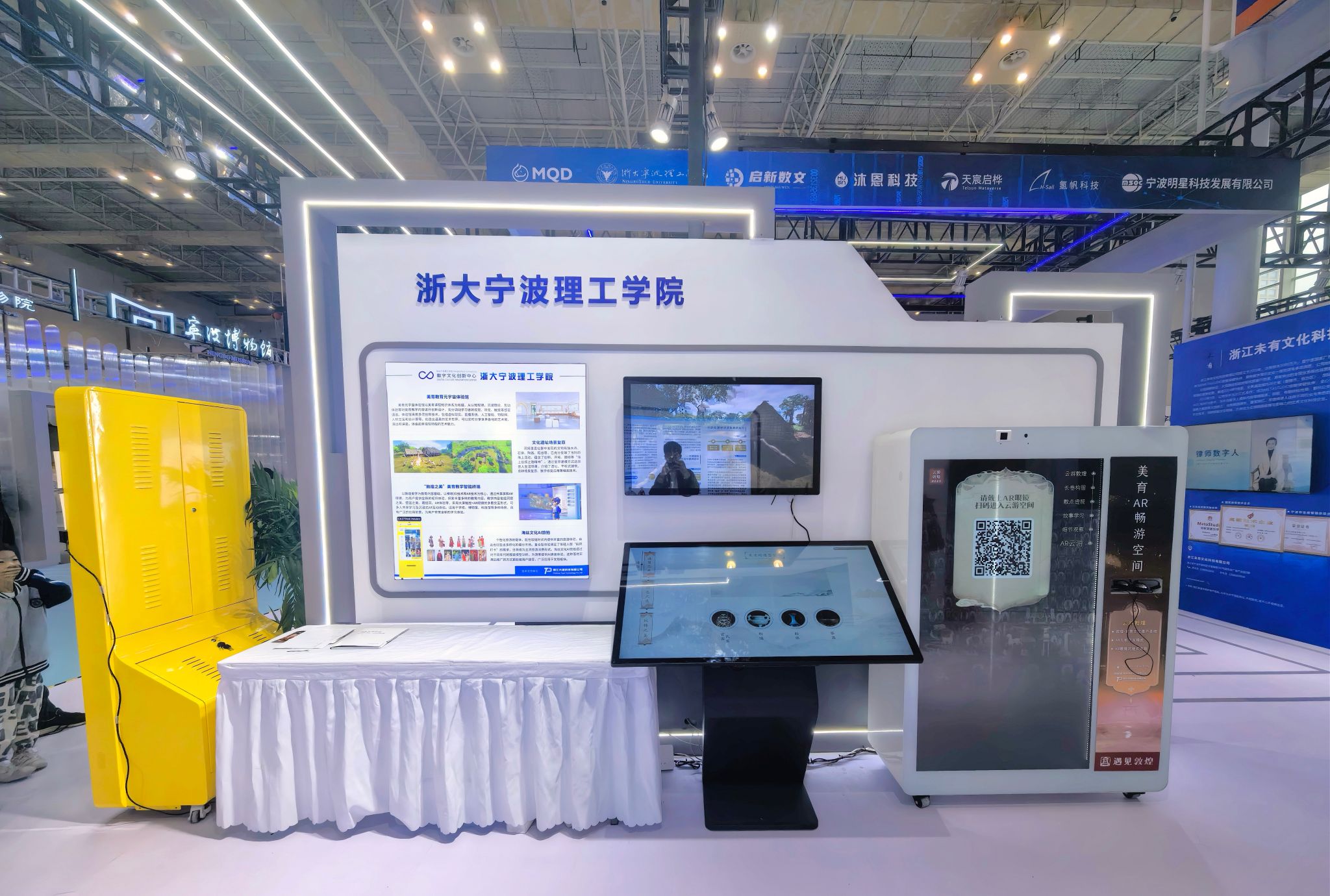 浙大宁波理工学院数字文化创新中心受宁波市科技局的邀请,代表我校参展。本次展览数字文化创新中心推荐了“启新数文——中国风格IP设计与智能服务平台”和“社会美育与美好生活”两个项目参展,用中华文化赋能智能制造,共创美好生活。
